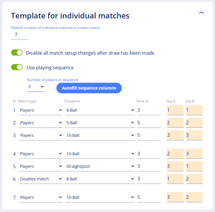 Chose the number of players in the sequence and press Autofill sequence columns.